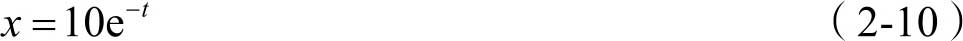 仿真结果分析:从图2-5和图2-7可以看出,该一阶常系数齐次线性微分方程的解是一条不断衰减的曲线,通过手动计算得到的数值解和利用Simulink模块计算得到的解是一致的。