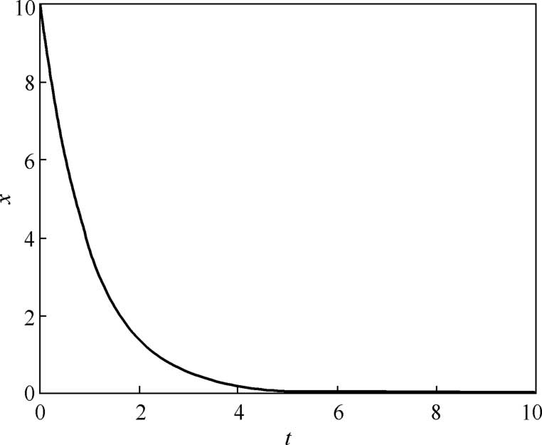 7)双击示波器模块,查看该二阶常系数齐次线性方程的输出结果(图2-10)。
