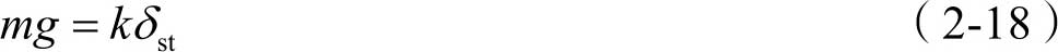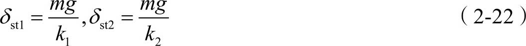 如果用一根刚度系数为 k 的弹簧来代替原来的两根弹簧,则此弹簧的静变形等于 δ st ,计算式为