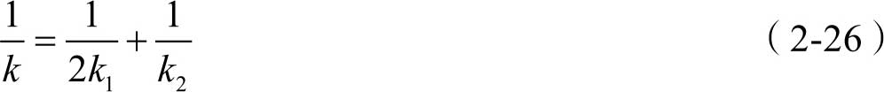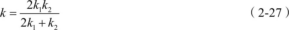 将式(2-22)和式(2-23)代入式(2-21),可得串联弹簧的等效刚度系数 k 为