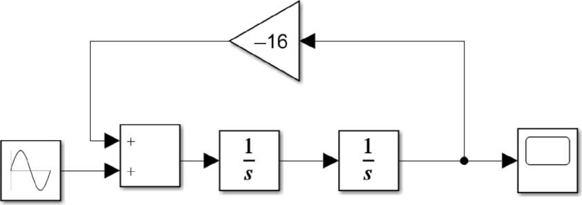考虑到前面建立的汽车单质量无阻尼受迫振动的微分方程(2-69),可以搭建图2-22所示的Simulink模型。