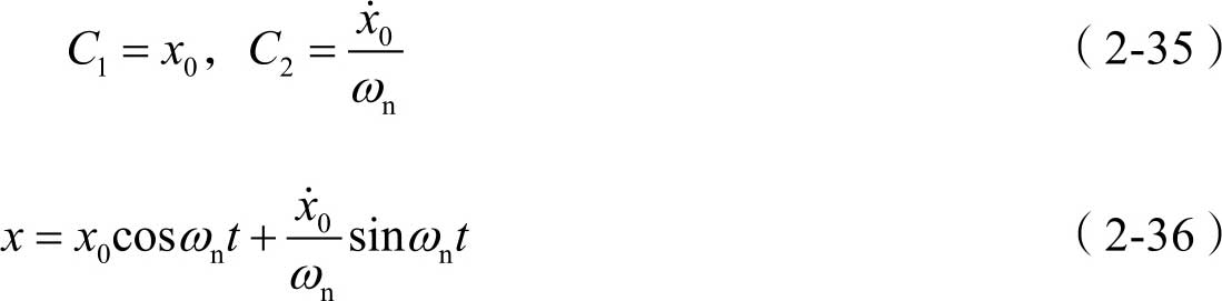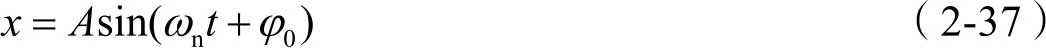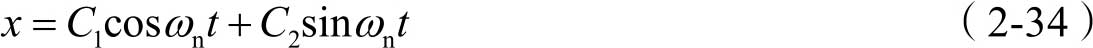 式(2-33)就是该汽车无阻尼自由振动系统只在线性弹力 -kx 的作用下的振动微分方程,称为汽车无阻尼自由振动方程。该振动方程是一个二阶常系数齐次线性微分方程,由前面介绍的微分方程理论可知,该方程的通解为