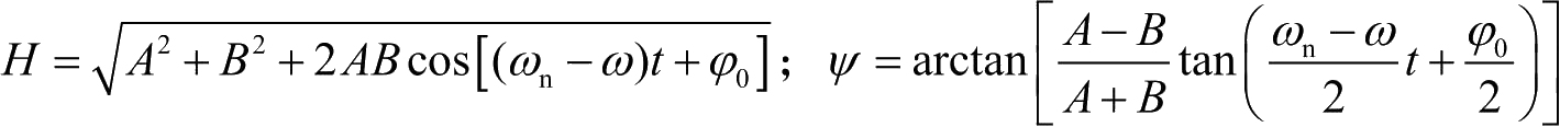的振动频率,这是两种简谐振动频率的均值。由振幅和相位角可知,合成后的振动方程被低频