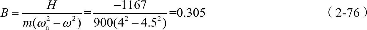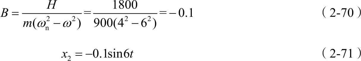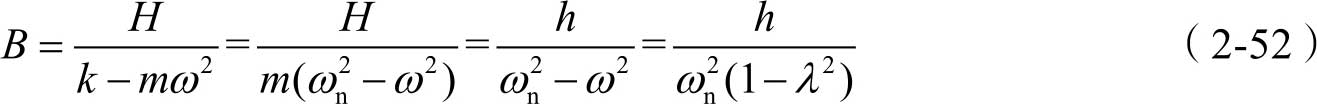显然,式(2-51)是一个简谐振动表达式,其振幅为 B ,圆频率与激振力的频率相同。