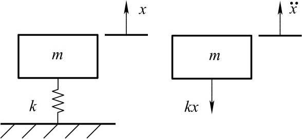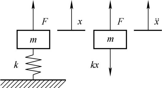 如果不考虑汽车悬架系统的阻尼对汽车系统振动的影响,则图2-2所示的汽车单自由度振动系统可以简化为一个无阻尼振动系统,根据外界激励的类型可以将其进一步分为无阻尼自由振动系统和无阻尼受迫振动系统。