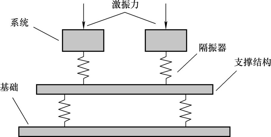 无源振动控制是指在减少机械结构振动的过程中,不涉及外部能量输入,只利用机械本身的结构和物理特性进行控制,如图1-20所示。振动无源控制的方法包括调整机械结构的质量均衡、调整杆件的刚度、改变支撑方式等。