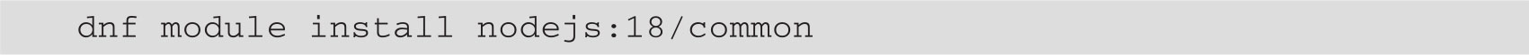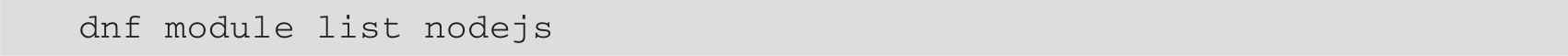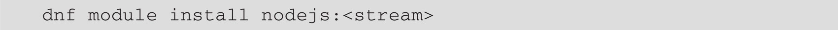 在CentOS、Red Hat Enterprise Linux 8和Fedora中使用名为nodejs的模块来安装Node.js,具体命令如下: