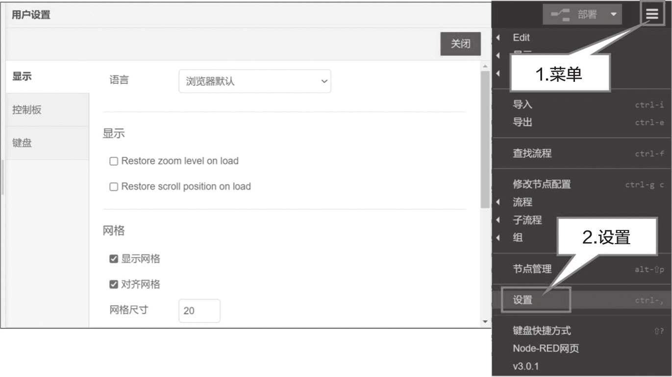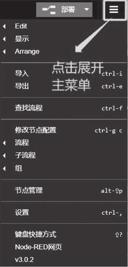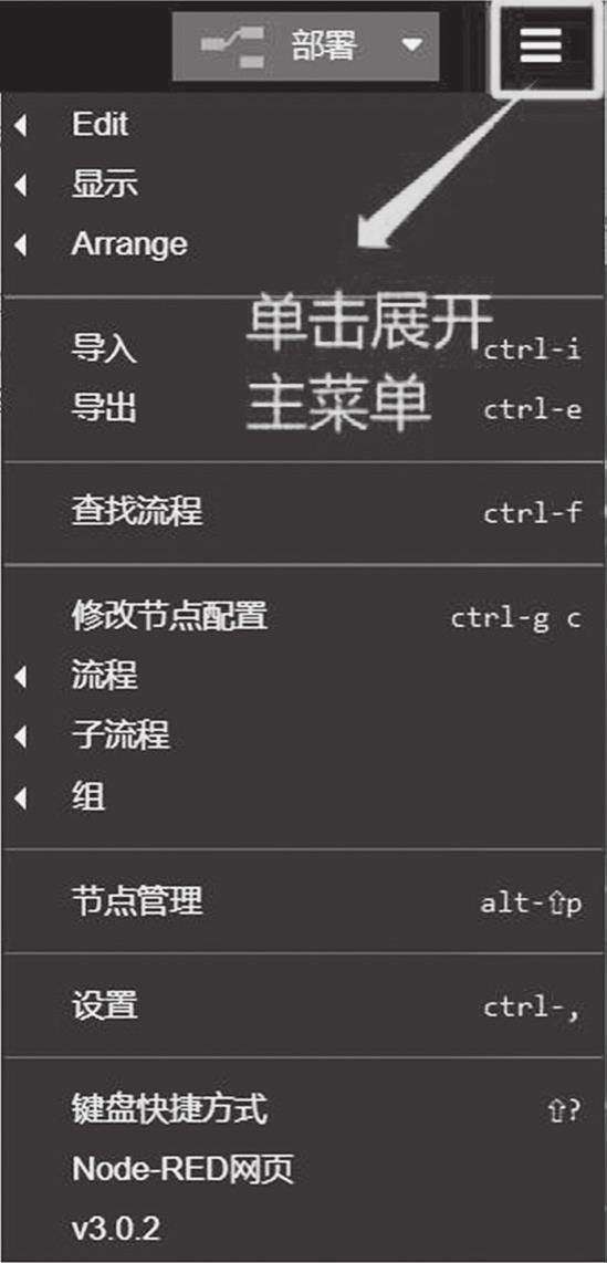图4-2 Node-RED的图形编辑器的用户主菜单