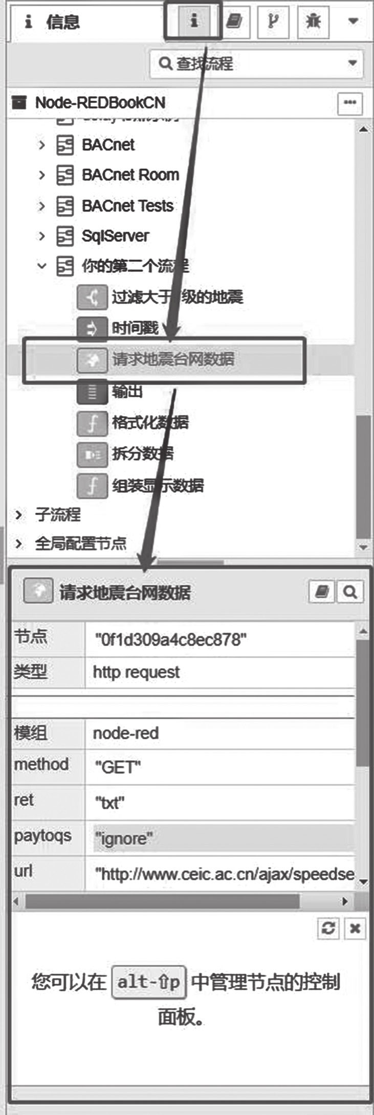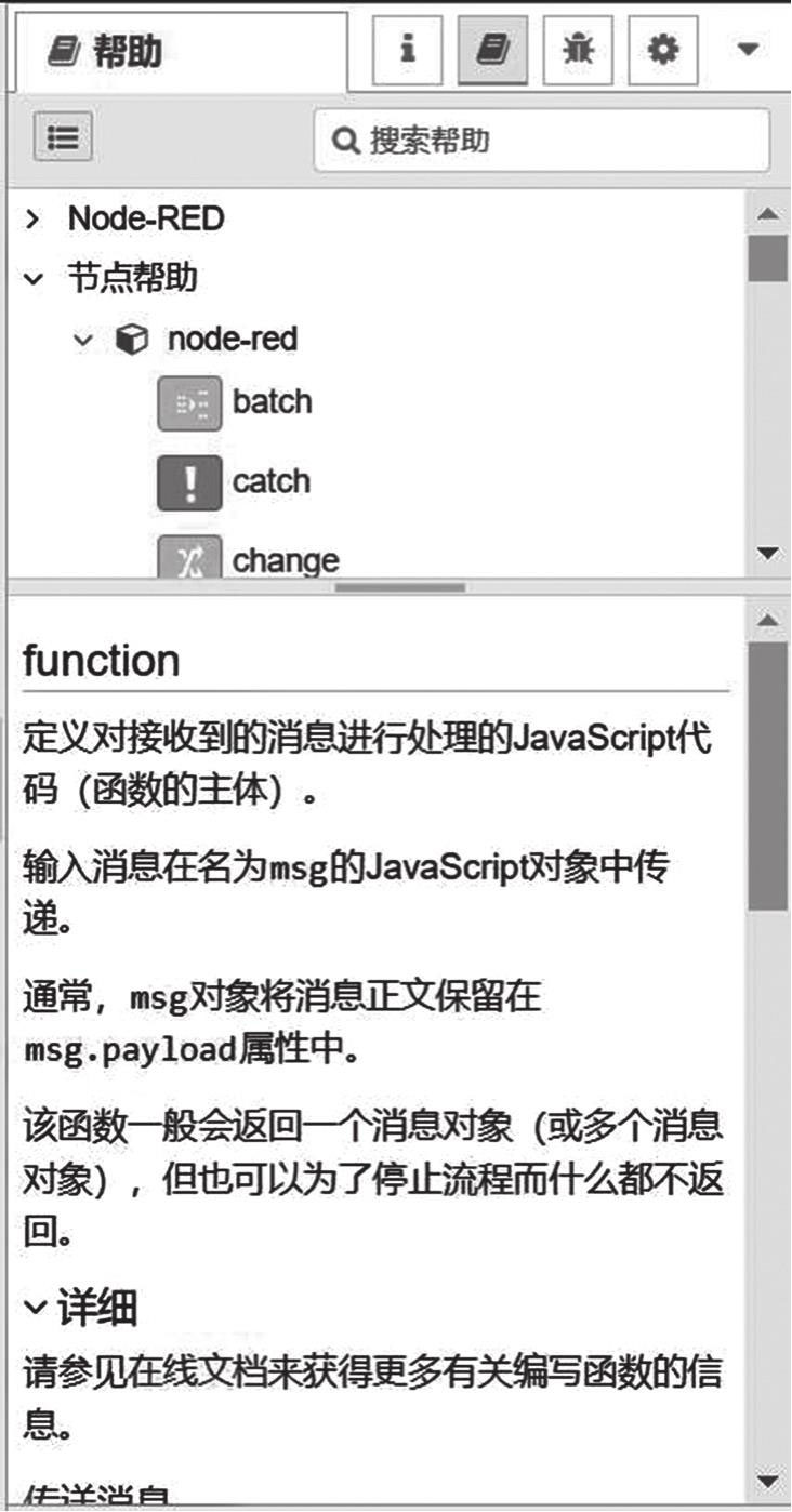 图4-5 Node-RED的图形编辑器的侧边栏