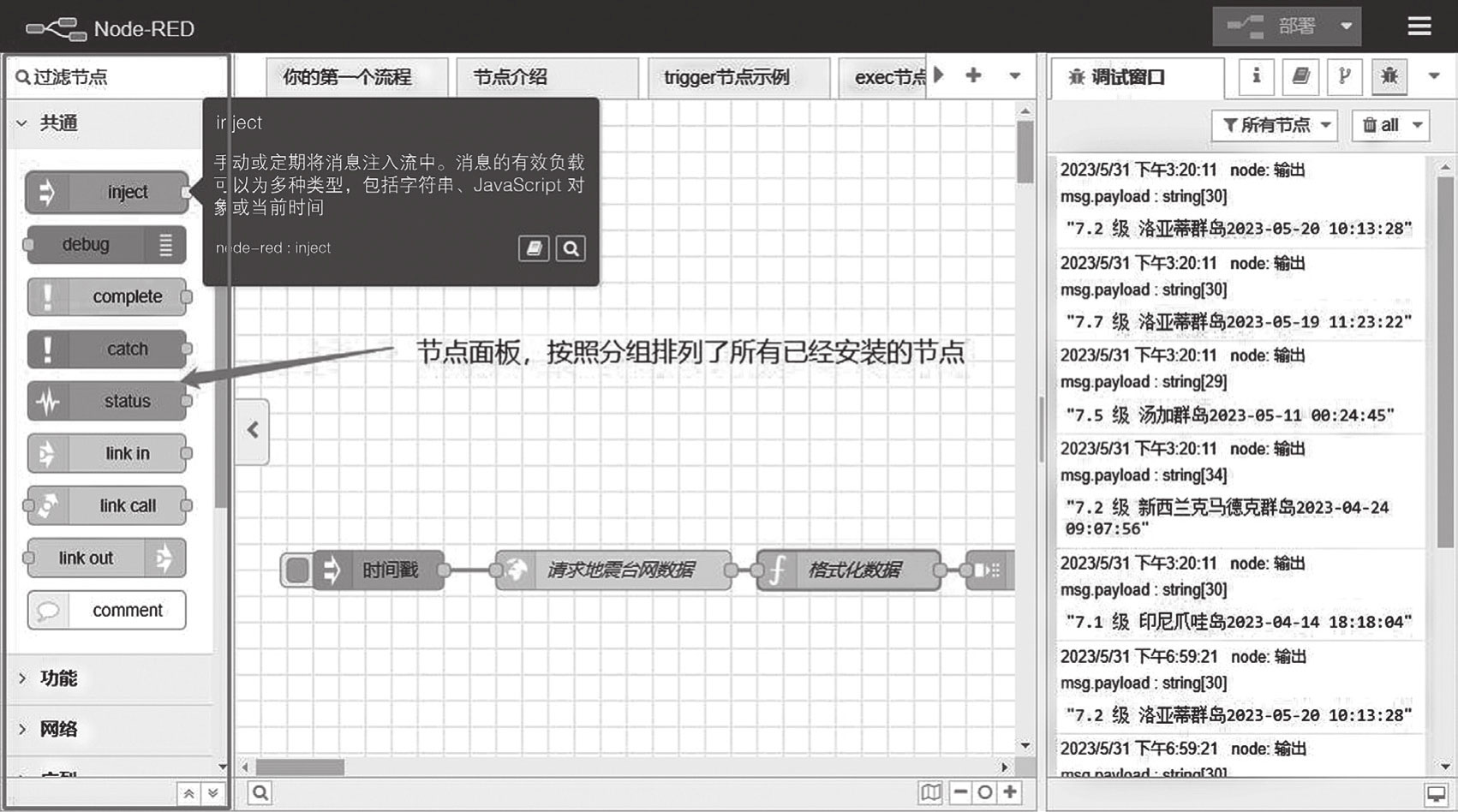图4-3 Node-RED的图形编辑器节点面板