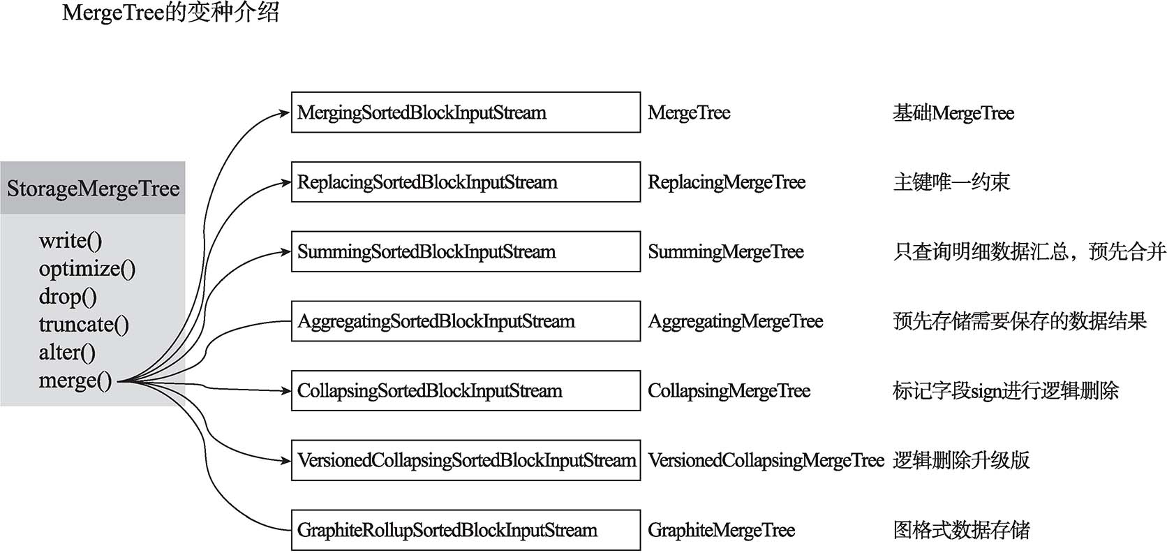 它主要由7种类型的MergeTree组成,具体的信息如图3-8所示。