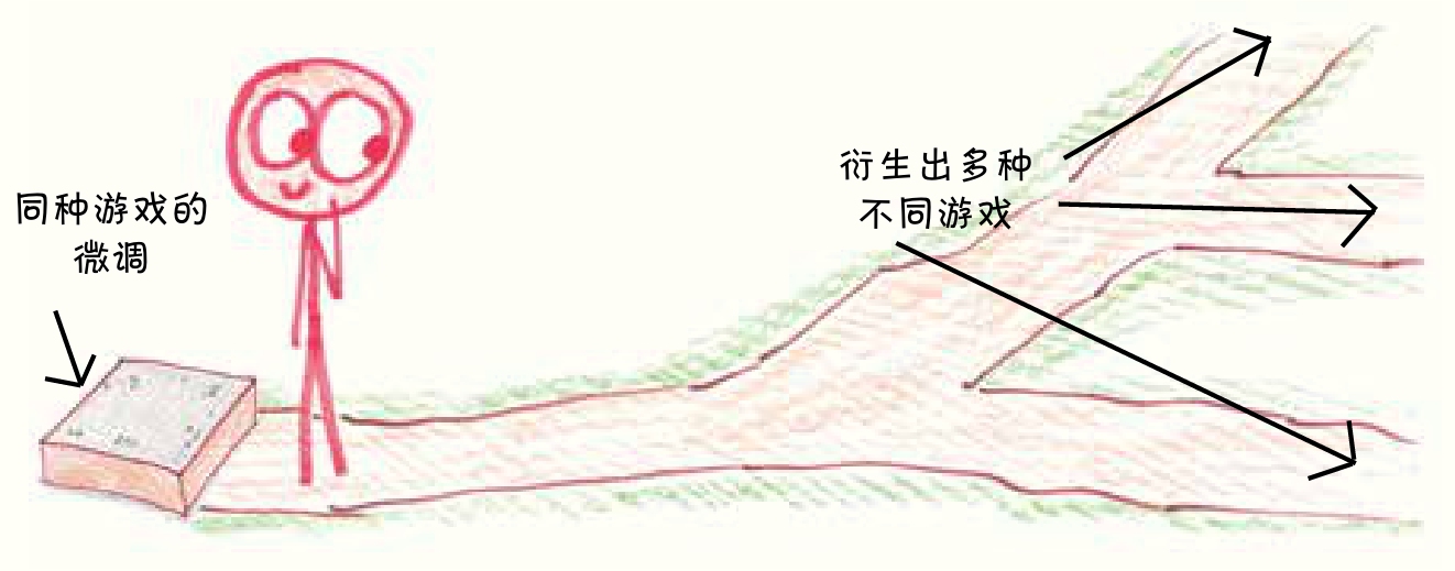 马森·哈特曼(Mason Hartman)写道:“一切好的思考都是游戏。”她的意思是,探索想法最好的方式应当像小猩猩探索森林一样,带着一种自由和舍弃的精神。这不是玩飞行棋,走的每一步都是为了胜利。相反,这是一个关于假装和想象的游戏,一个告诉自己“是的,然后……”的游戏,一个代代相传的游戏,一支永不熄灭的火炬。“玩一个有限游戏的目的是获胜,”詹姆斯·卡斯(James Carse)写道,“而玩一个无限游戏的目的是让游戏不要停下来。”