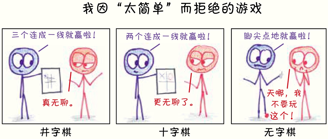 以上每个大类的游戏各占一章,每章都以一篇介绍数学相关分支的有趣文章拉开序幕,紧接着推荐 5款有特色的游戏 ,每款游戏占一节,大致按照复杂性不断增加的顺序排列(但每章都是全新的开始),最后是对多个游戏的简要介绍(其中有几个我非常喜欢)。