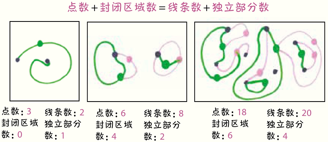 点的数量加上封闭区域的数量总是等于连接点的线的数量加上独立部分的数量。