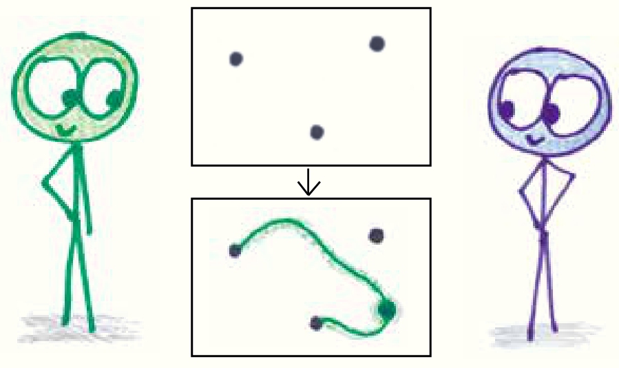 你需要准备什么? 2名(或更多)玩家、2支不同颜色的笔和1张纸。先在纸上画几个点。对于最初几轮游戏来说,3~4个点就足够了。
