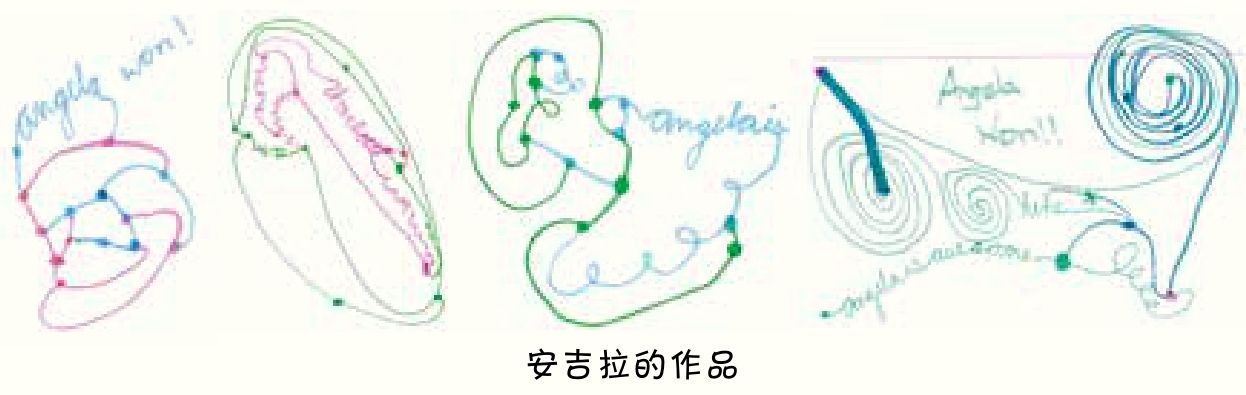 抽芽游戏的乐趣在于它的灵活性。不管你画的是短线或懒洋洋的曲线,还是迷宫般的螺旋。重要的是,你连接了哪些点。你甚至可以签上自己的名字。在我们的游戏测试中,6年级学生安吉拉发明了用抽芽游戏签名,尽管从技术上讲,这违反了“禁止交叉”规则,但它看起来实在太棒了,让人于心不忍。