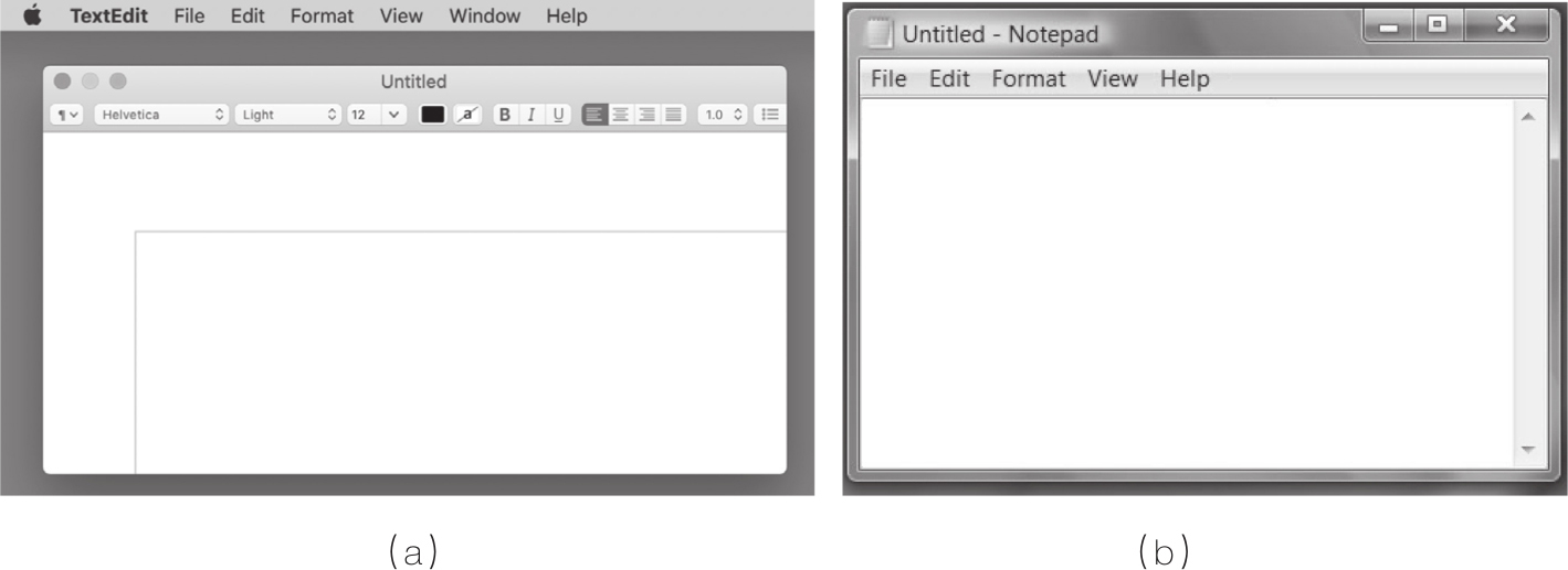 注:图a是macOS的菜单位置,软件的菜单栏总是出现在桌面的顶部;图b是Windows系统的菜单位置,菜单栏是软件窗口的一部分。