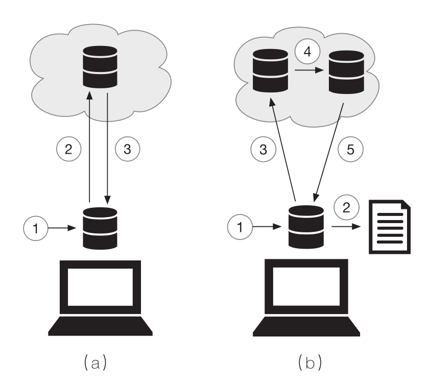 注:图a是我的假设:①我修改了一个文件;②Backblaze运行备份时,将文件复制到云端;③我从云端恢复文件。图b是实际情况:①我修改了一个文件;②Backblaze运行扫描并将该文件添加到要备份的文件列表中;③Backblaze运行备份,只将上次扫描中添加到列表的文件复制到云端;④Backblaze定期将备份文件移动到云端的恢复区域;⑤我从恢复区域恢复文件。