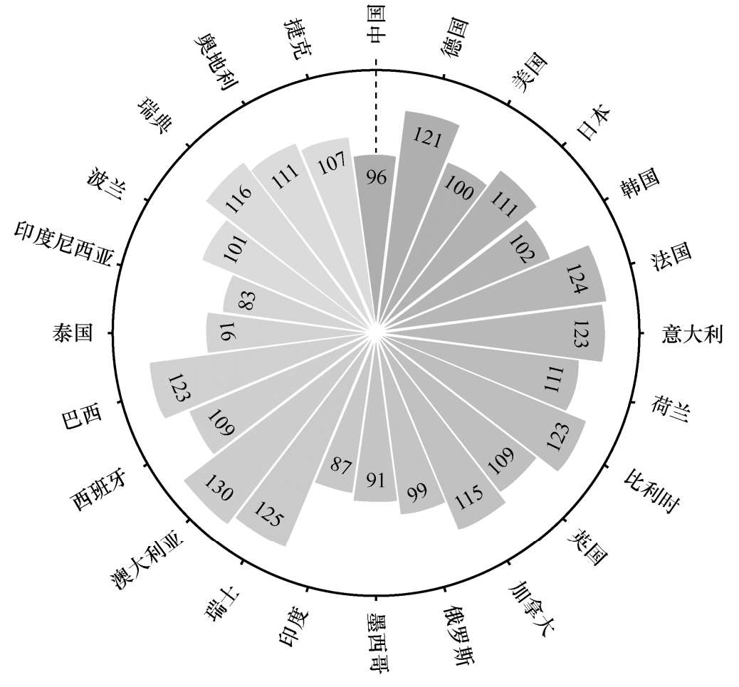 南丁格尔玫瑰图将柱形图转化为更美观的饼图形式,是极坐标化的柱图。不同于饼图使用角度表示数值或占比,南丁格尔玫瑰图使用扇形的半径表示数据的大小,各扇形的角度则保持一致。南丁格尔玫瑰图如图1-1所示。