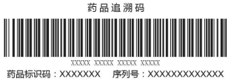 (3)药品追溯码标识样式要求 ①药品追溯码标识的内容应包括“药品追溯码”字样、药品追溯码人眼识读的字符和药品追溯码设备识读的符号(包括一维条码或二维码),药品追溯码标识见图3-2、图3-3。②应在药品追溯码设备识读符号临近位置标识“药品追溯码”字样,最小字高不宜低于1.8mm。③应在药品追溯码标识位置附近增加有关查询方式的说明。