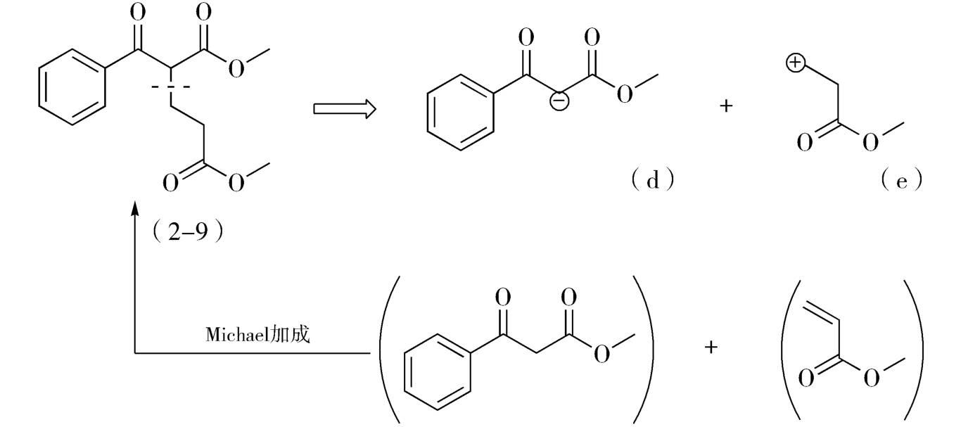 但这些推导出的合成子,仅有d和e具有实际应用价值,由两种合成子推导出的相应易得试剂经Michael加成,即得目标产物(图2-6)。