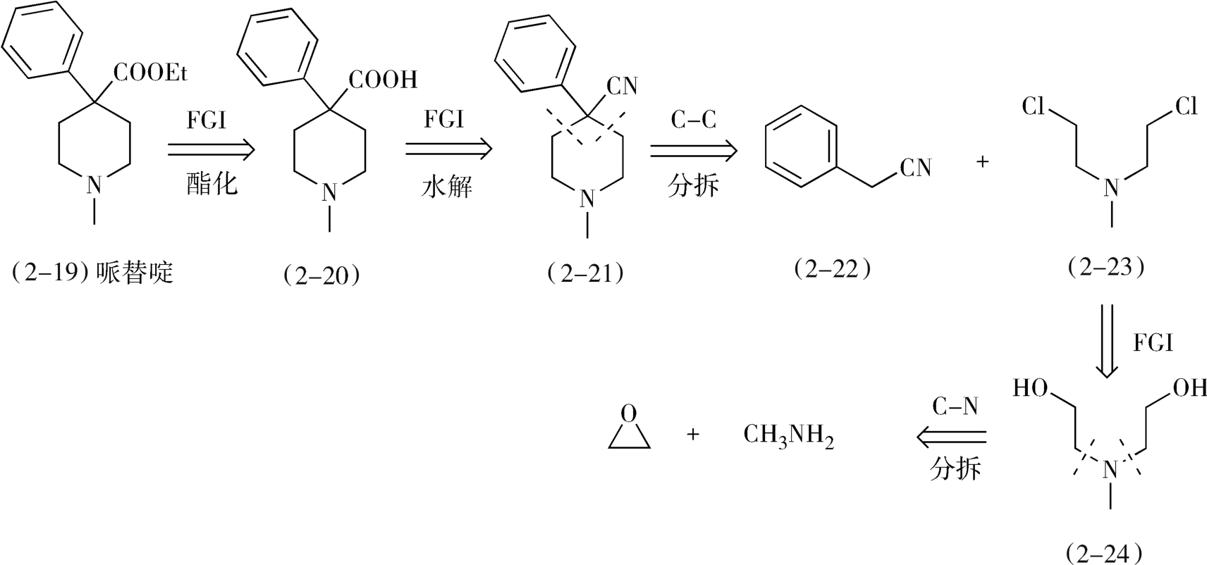 图2-10 哌替啶的逆合成分析