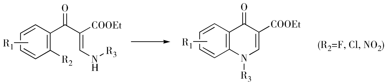 图2-29 取代苯胺与EMME缩合成吡酮酸环