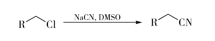 对于S N1 亲核取代反应,与非质子性溶剂相比,质子溶剂有较高的反应速率,这是因为质子性溶剂在速率决定步骤中有利于阴离子基团的离去;但在S N2 亲核取代反应中,质子性溶剂不利于反应的进行,这是由于阴离子在速率决定步骤中充当了亲核试剂,如果阴离子被溶剂化,它的活性降低。非质子性极性溶剂如二甲基亚砜有利于S N2 亲核取代反应,没有被溶剂化的阴离子会有较高的活性。例如,以二甲基亚砜为溶剂时,氰化钠与伯卤代烷发生S N2 亲核取代反应,0.5~2小时后就可得到腈;而在乙醇水溶液中,反应需进行1~4天。伯卤代烷发生亲核取代反应如下(图3-18)。