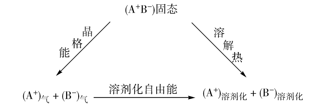 图3-10 晶格能、溶剂化自由能和溶解热之间的关系
