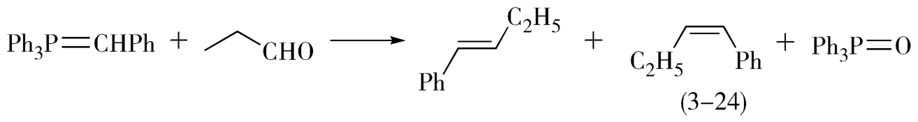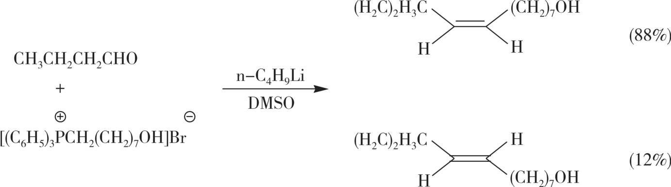 3.溶剂对产物构型的影响 溶剂对产品的构型也有影响。由于溶剂极性的不同,某些反应产物中顺、反异构体的比例也不同。例如,在C 2 H 5 ONa作用下的Wittig反应中,顺式产物(3-24)的含量随溶剂的极性增大而增加,按溶剂的极性次序(Et 2 O<THF<EtOH<DMF)顺式产物的含量由31%增加到65%(图3-15)。