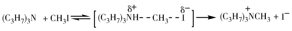 图3-12 碘甲烷与三丙胺生成季铵盐的反应