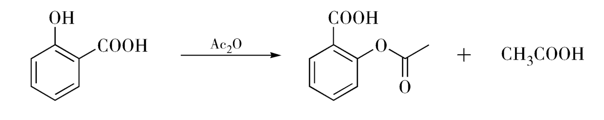 又如,水杨酸用醋酐酰化制备阿司匹林时会发生如下反应: