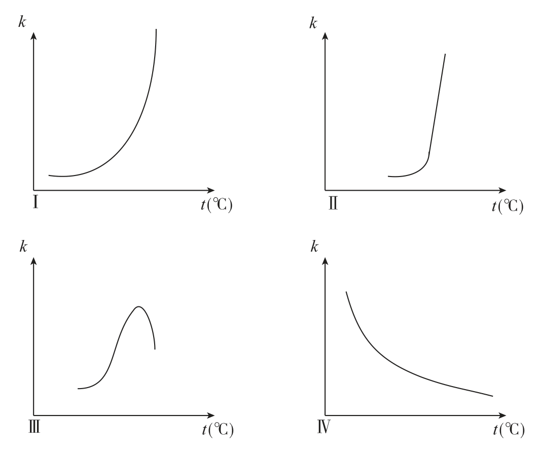 图3-33 不同反应中温度 t 对速率常数 k 的影响