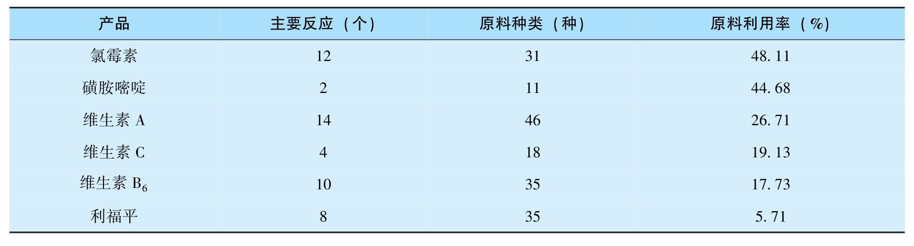 1.制药工业对环境的污染 制药工业对环境的污染主要来自原料药生产。原料药生产通常具有“三多一低”的特点,即产品的品种多、生产工序多、原料种类多,而原料的利用率偏低。例如,化学合成的氯霉素,每生产1吨氯霉素约消耗31种原料52吨之多,从废液中流失的硝基化合物的量(均以硝基苯计)竟然为产品氯霉素量的1.65倍。表1-1列出了几个原料药的使用情况,由表中数据可见,如果生产过程中对没有被利用的原料和副产物不加以回收,就会造成几十倍,甚至几百倍于药品的原料浪费,以“三废”的形式排放于环境之中。据不完全统计,全国药厂每年排放的废气量为10亿立方米(标准状态),其中含有害物质约10万吨;日排废水量约50万立方米;年排废渣量高达10万吨,对环境产生的危害十分严重。
