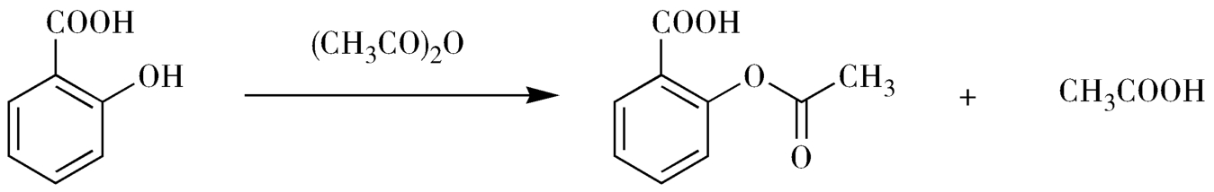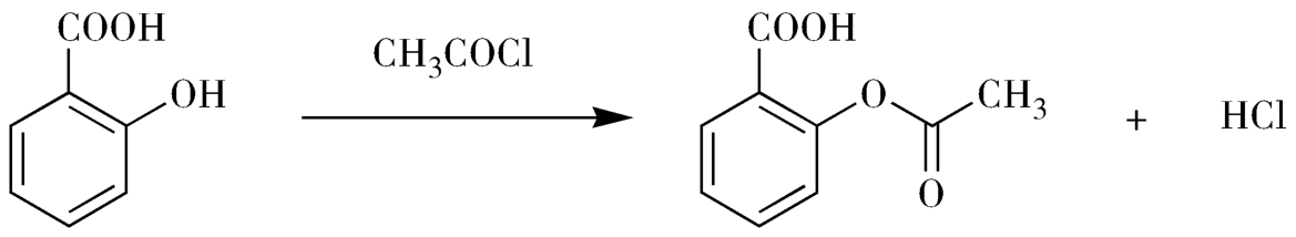 在药物放大生产研究阶段,在优先考虑能够实现大规模生产的前提下,为了得到高产率和高纯度的产品,需要对制备工艺路线的每一步反应条件进行仔细的研究和修正,主要研究温度、压力、反应时间、过量的试剂或反应物、浓度和加料的方式等对反应的影响。此外,还需对不同的溶剂、试剂和催化剂等进行筛选。例如,阿司匹林的原制备工艺路线是水杨酸与乙酰氯进行乙酰化反应(图1-1)。考虑到反应过程中生成的副产物氯化氢有腐蚀性、对环境会造成一定的危害。