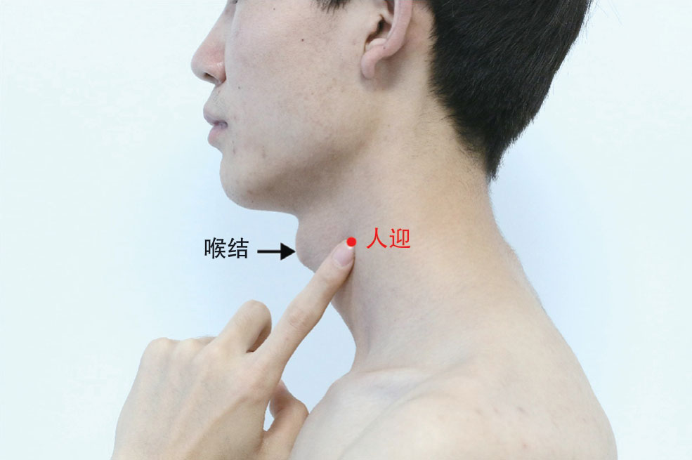 颈部动脉搏动之内侧缘,平喉结处即是本穴。(图5-14)