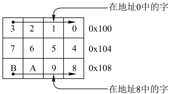 一个对齐的字地址是4的倍数,如0x100、0x104、0x108、0x10c、0x110等,如图5.13所示。