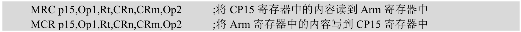 (1)Op1为协处理器指定的4位操作码,对CP15来说,Op1为0000。