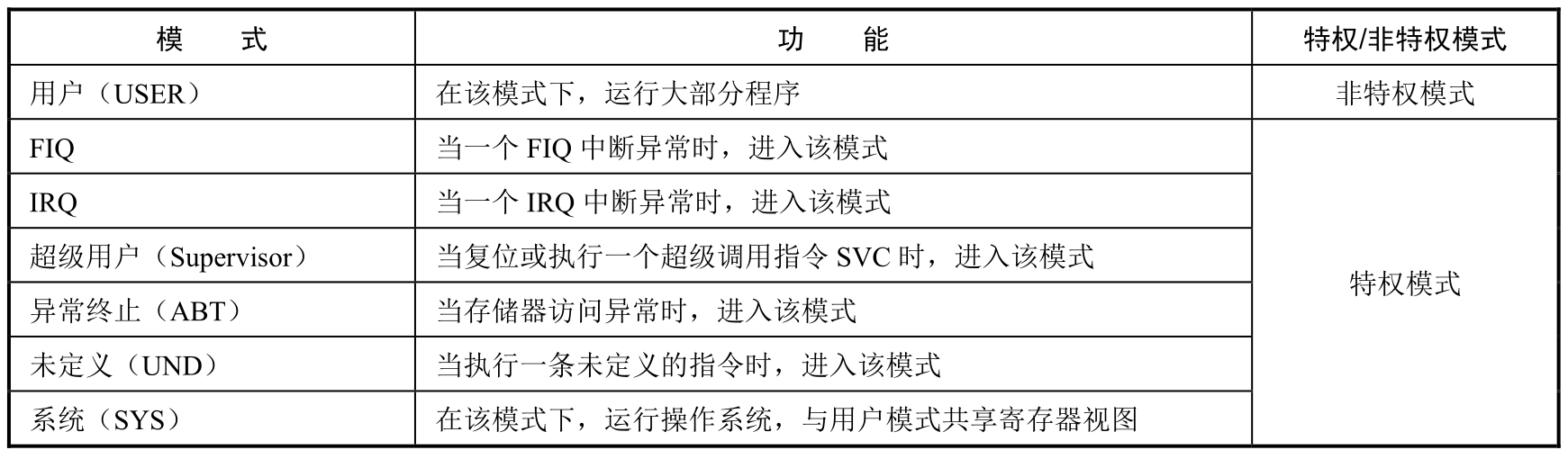 注:当前的处理器模式和执行状态被保存在当前程序状态寄存器(Current Program Status Register,CPSR)中。特权软件可以修改处理器的状态和模式。