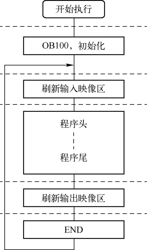 在上电运行或复位时,OB100初始化一次,完成如下任务:刷新输入/输出映像区;自诊断;清除数据区;分配输入/输出映像区的地址;等等。