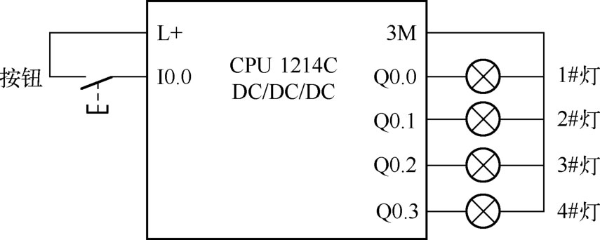图2-72为用一个按钮控制四个灯的电气接线图。表2-31为输入/输出元件及其控制功能。