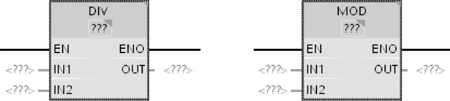 除(DIV)指令和返回余数(MOD)指令形式如图2-56所示。前者是返回相除后的商。后者是返回相除后的余数。需要注意的是,MOD指令只有在整数相除时才能应用。