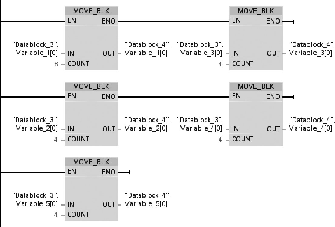 图2-65 将DB3中的5个数据块移动到DB4中的梯形图