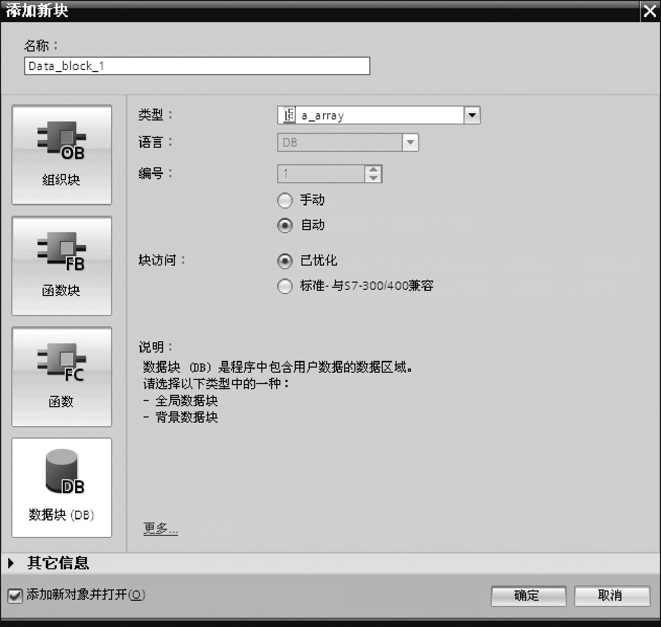 图2-62 添加一个含数组a_array的DB