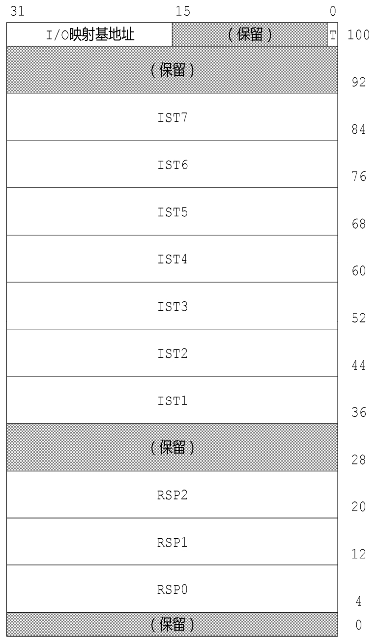 在IA-32e模式下,不再支持硬件任务切换,但TSS依然有用,依然要用于中断和异常的处理及系统调用。同时,TSS的布局发生了变化,大部分内容被废弃。