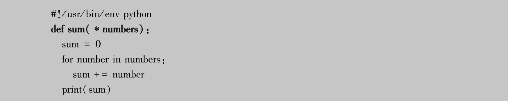 除此之外,Python还有可变参数,在sum函数参数的前面加上星号(*),意味着将该参数变为可变参数,即