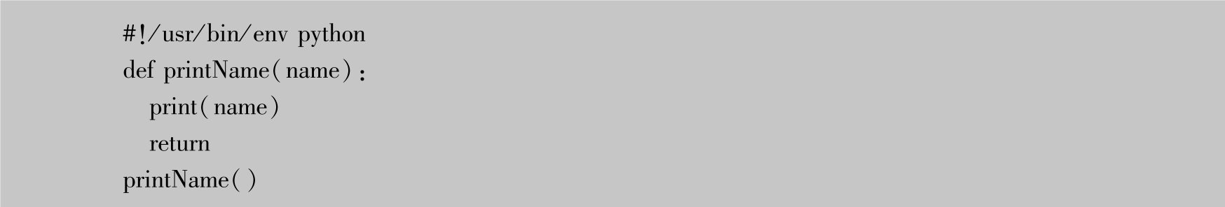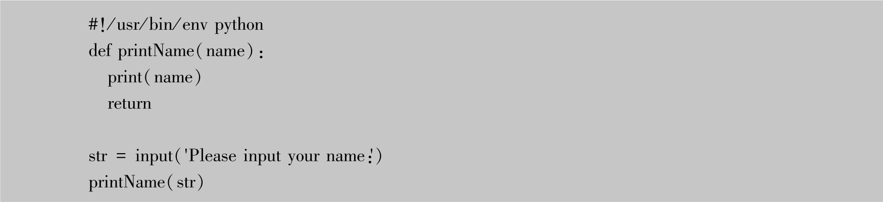 知道函数名和参数后,就可以很方便地调用函数了,可以继续编写程序调用已定义的printName函数,即