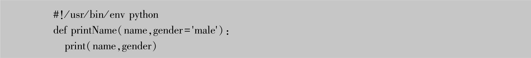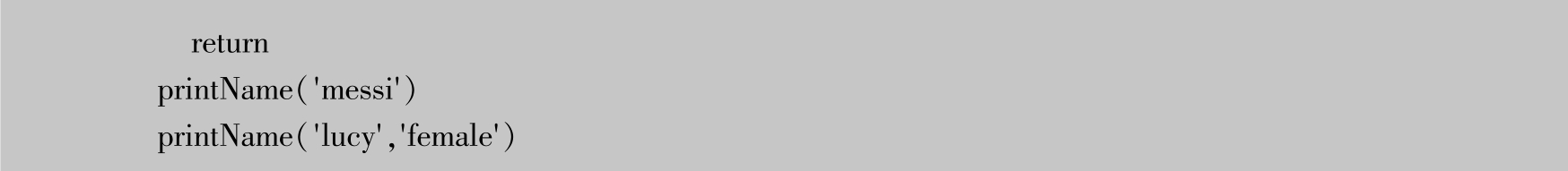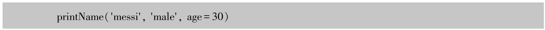 当messi为男性时,调用printName()函数并未传入性别参数,gender参数就是Python函数中的默认参数。