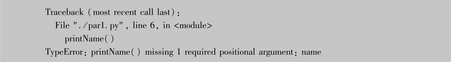 调用函数时,传入的参数数量和类型需要与函数的定义一致,否则会报语法错误,如调用printName函数时,不传入参数会提示TypeError,即