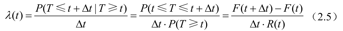 失效率 λ ( t )是可靠性工程人员关注的一项指标,其指工作到时刻 t 尚未失效的产品,在该时刻之后单位时间内发生失效的概率。于是有